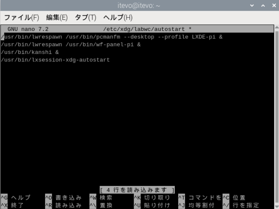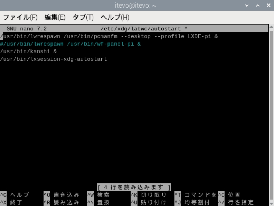 この記事では、labwc環境でタスクバー(wf-panel-pi)を非表示にする方法をまとめます。